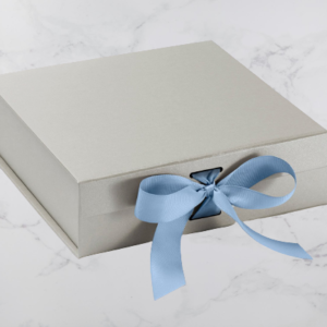 The ribbon isn’t permanently fixed to the box so you can add a different ribbon colour or decorative closure.