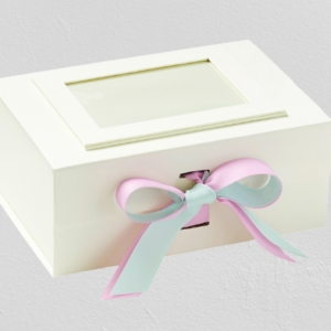 The ribbon isn’t permanently fixed to the box, so you can add a different ribbon colour or decorative closure.