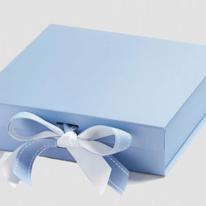 White A4 Deep folding gift boxes with changeable ribbon are ideal as baby hamper gift boxes or wedding keepsake memory boxes. Also great for bridal lingerie, glassware, specialty food hampers and beauty or perfume gift hampers.