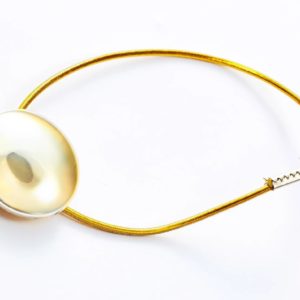 Gold smooth dome decorative closure, pre-threaded with metallic gold elastic cord loop. Shiny gold colour with classic and elegant smooth metallic and reflective surface.