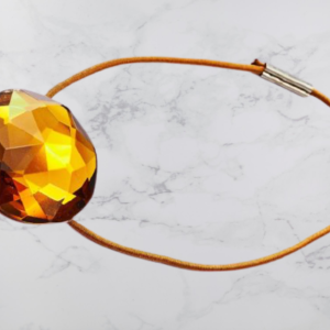 Black Diamond decorative gemstone gift box closure, pre-threaded with black elastic cord loop.