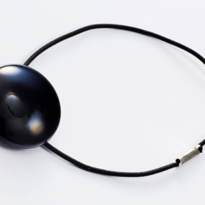 Black gloss finish smooth dome decorative closure, pre-threaded with black elastic cord loop. Solid black colour with classic and elegant smooth gloss surface.