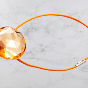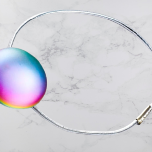 Rainbow Crystal (clear multi-colour) decorative gemstone closure, pre-threaded with silver elastic cord loop. This gemstone catches the light and appears multi-coloured – they are very eye-catching!