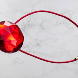 Ruby (dark red) decorative gemstone closure, pre-threaded with dark red elastic cord loop.
