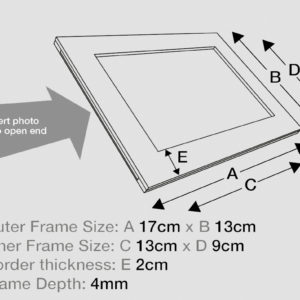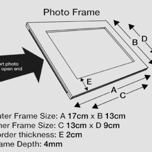 They’re easy to affix; just peel off the release paper from the self-adhesive strips. Designed to hold a 6 x 4 photo (4R) or printed information.