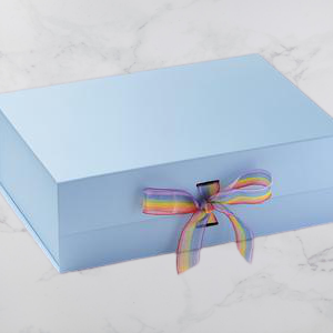 Add a different colour ribbon to gift boxes to match your brand. Create unique and distinctive gift packaging solutions that stand out from the crowd. Gift boxes also look great doubled up with the supplied gift box ribbon and an additional colour.